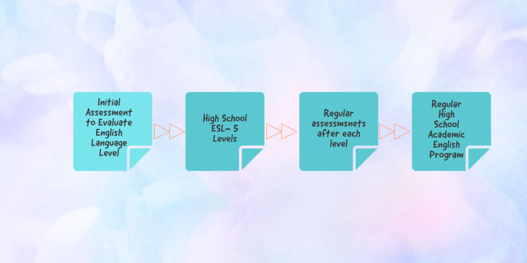 At Brock Academy, the ESL process adheres to the guidelines set by the Ontario Ministry of Education. It comprises five (5) levels of Academic ESL, which serve as a preparatory phase before students’ transition to the regular Academic English high school program.